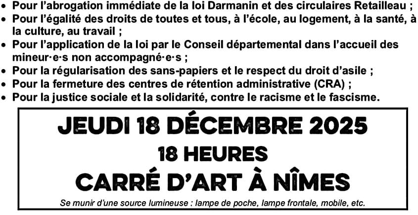 L'Interco Sud Cévennes se joint au mouvement  et co-signe avec d'autres organisations l'appel à manifester à Nîmes le 18 décembre 2025 à Nîmes.